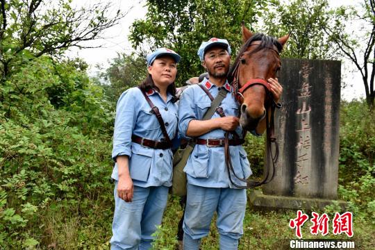 罗建华、丁啟梅夫妇在四川叙永“营盘山上桔子红“革命纪念地合影留念 邹立扬 摄
