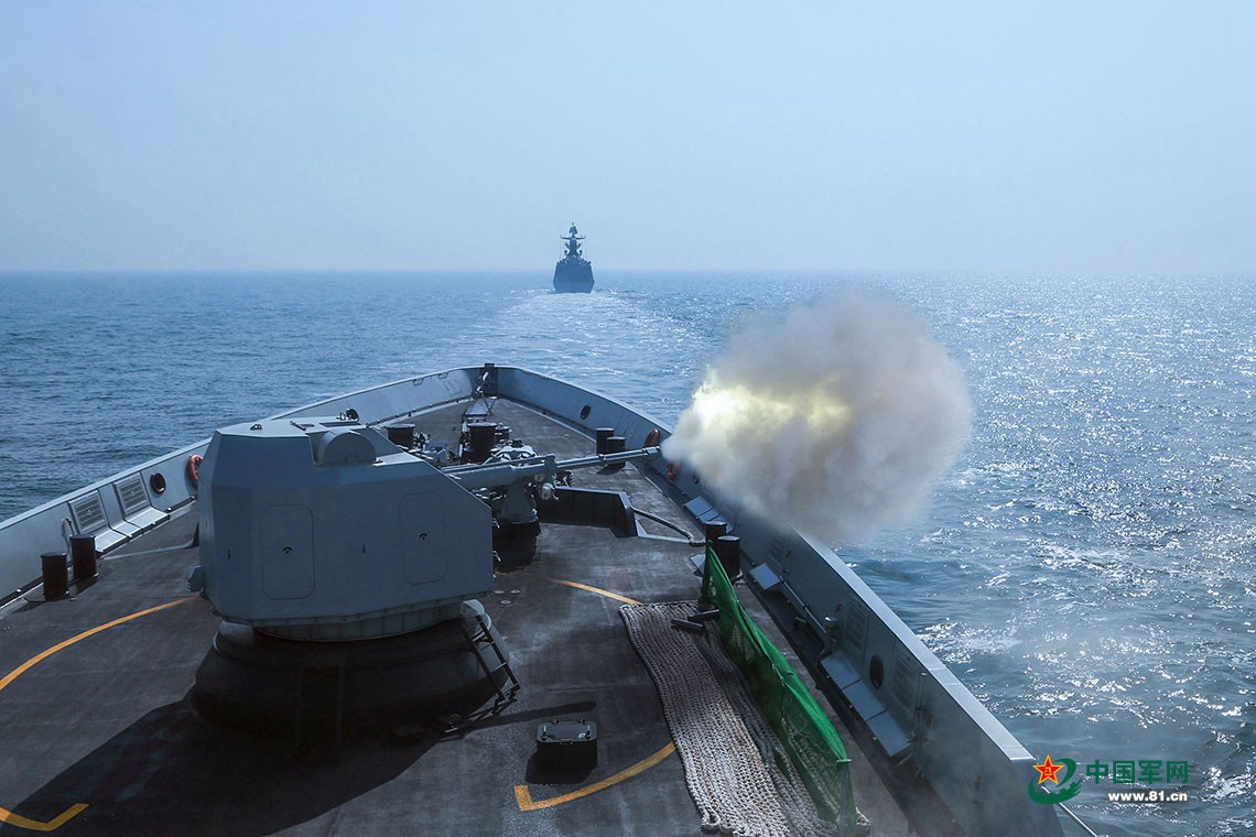 日照舰主炮对海射击。