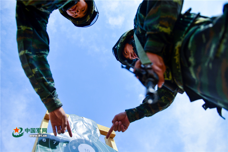 特战队员在分析射击情况。(袁浩翔摄)