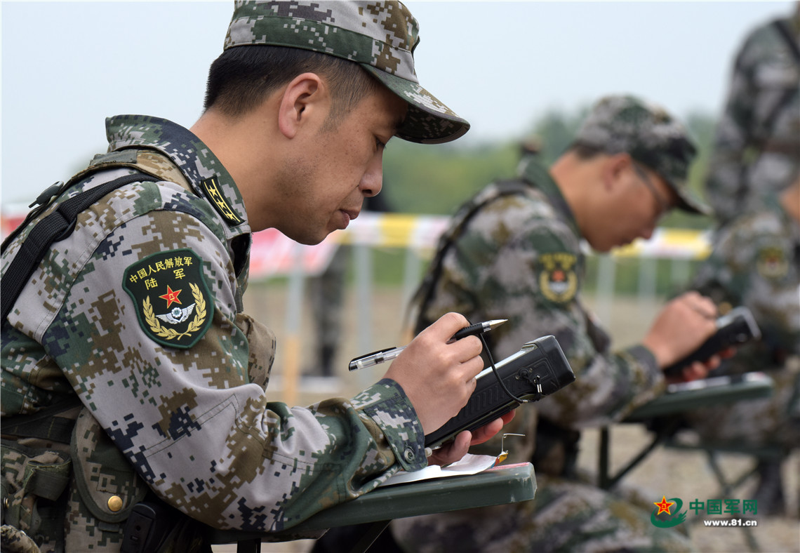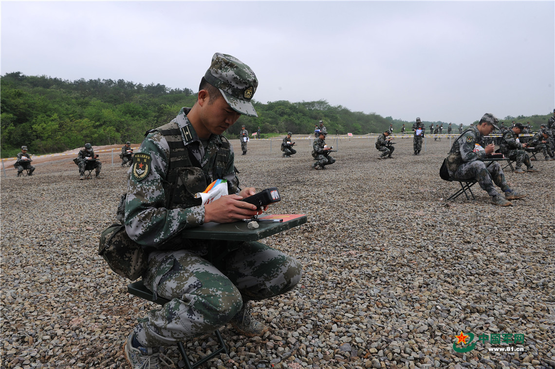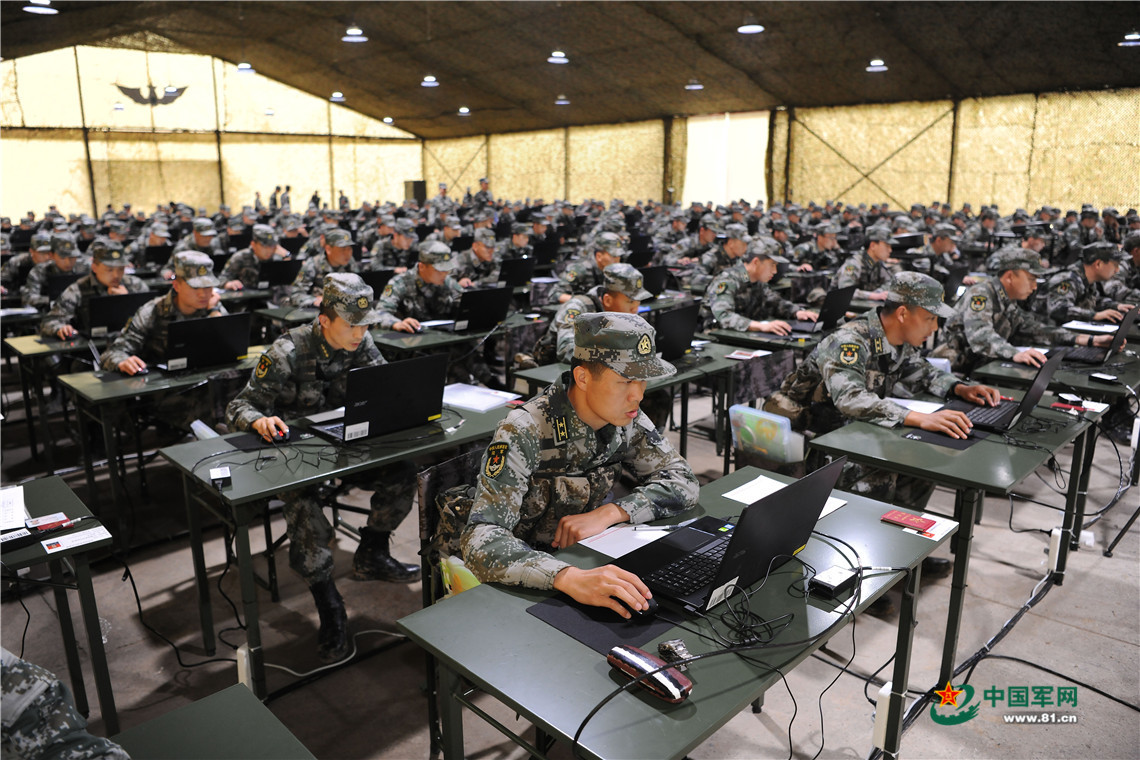 4月24日,陆军首次战役参谋比武,参赛人员进行基础理论课目竞赛。彭希摄影