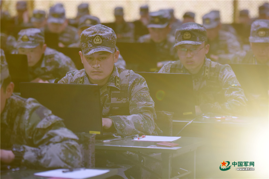 4月24日,陆军首次战役参谋比武,参赛人员进行基础理论课目竞赛。彭希摄影
