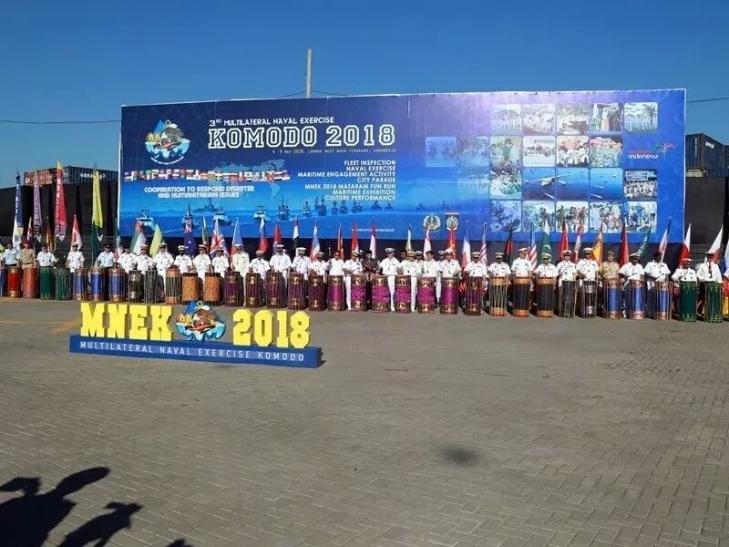 当地时间5日,由印度尼西亚海军主办的“科摩多-2018”多国联合演习在印尼龙目岛伦巴港开幕。