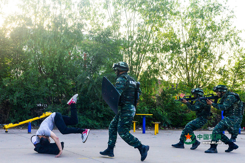 对“暴恐分子”展开追捕。(袁浩翔摄)