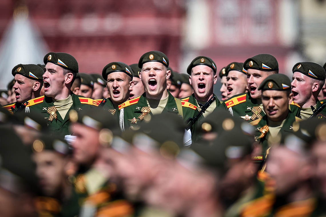 俄军士兵参加阅兵式。新华社发(叶甫盖尼·西尼岑 摄)