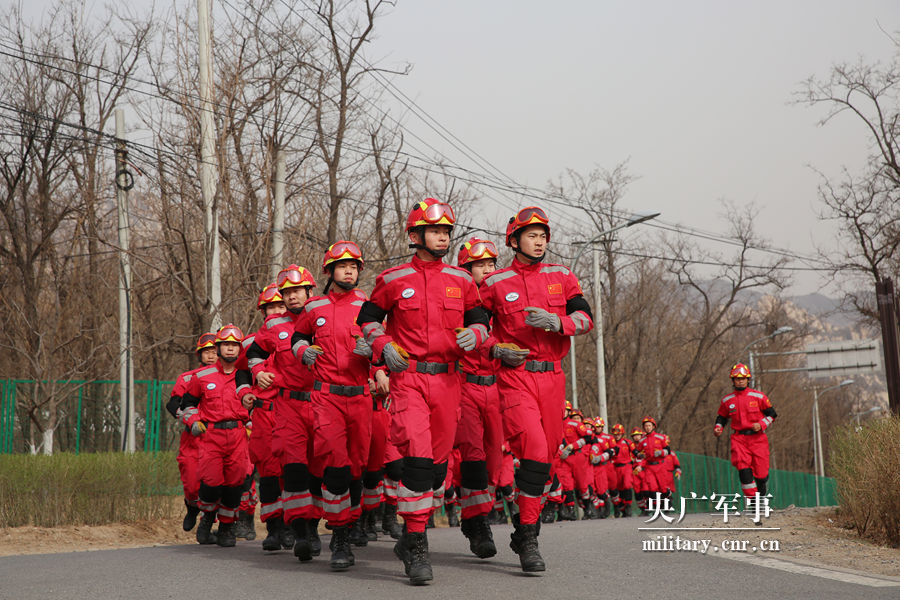 接到出动命令后,救援队员紧急奔赴救援现场。