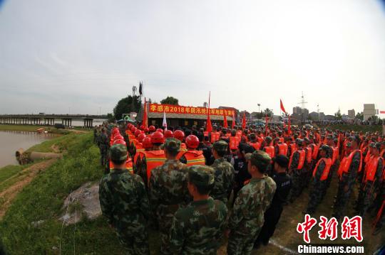 孝感市多个应急联动部门联合举行军地防汛抢险救援实战演练。王基达 摄