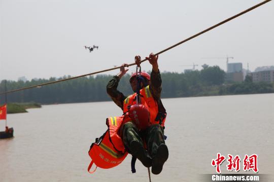 湖北孝感防汛抢险军地联合演练 实战上演孤岛救援