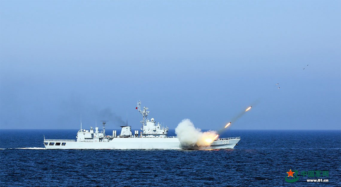 宜昌舰发射舰艏火箭深弹。张海龙 摄