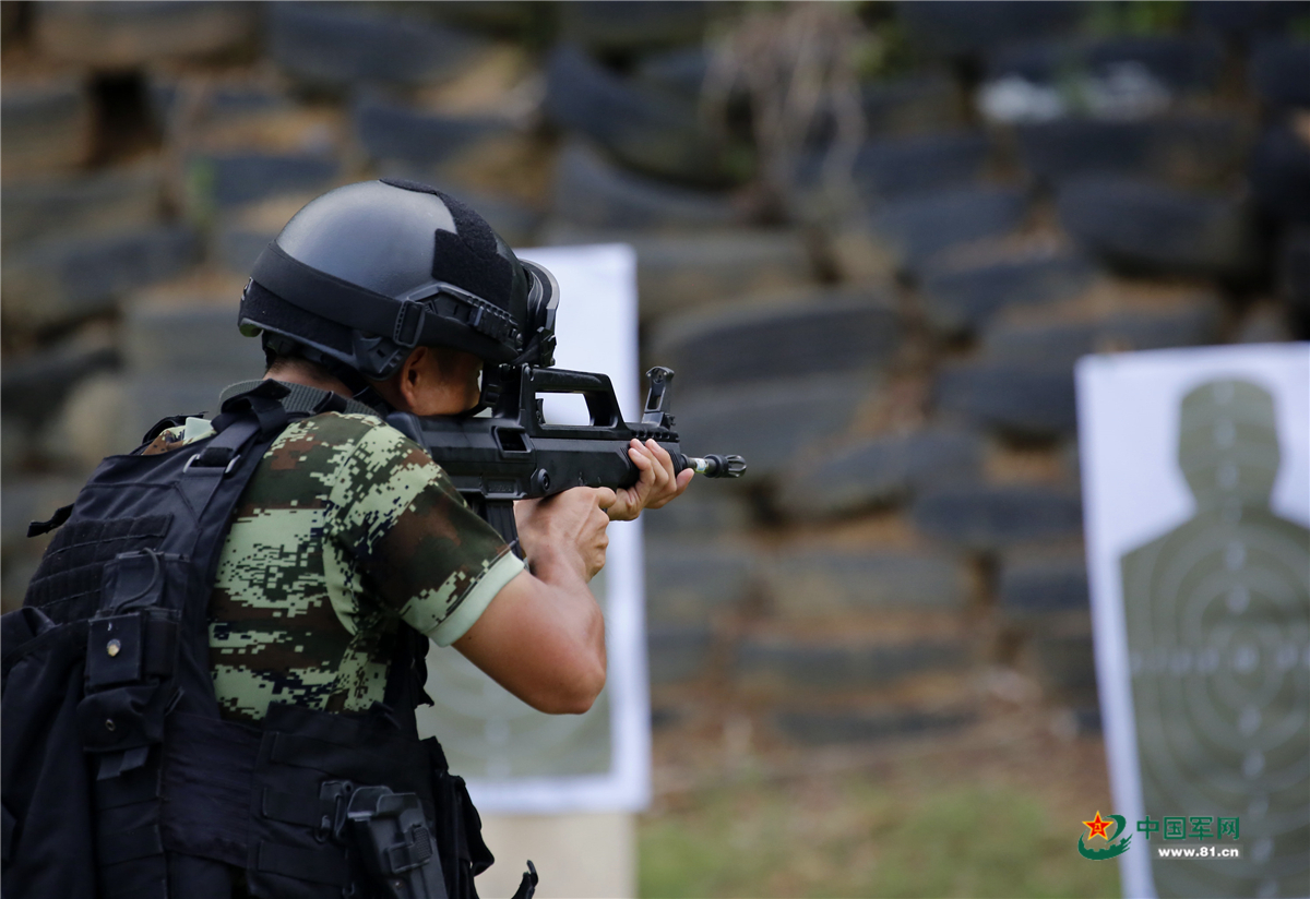 特战队员精确瞄准、快速击发。