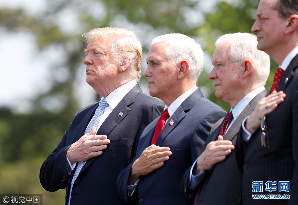 5月15日,美国华盛顿,美国总统特朗普出席第37届全国治安官纪念仪式。(图片来源:视觉中国)