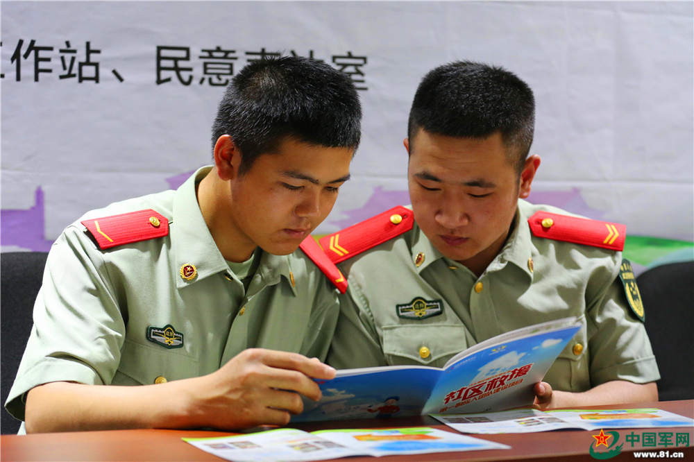 救护培训前,官兵们认真学习资料。陈鹏 摄