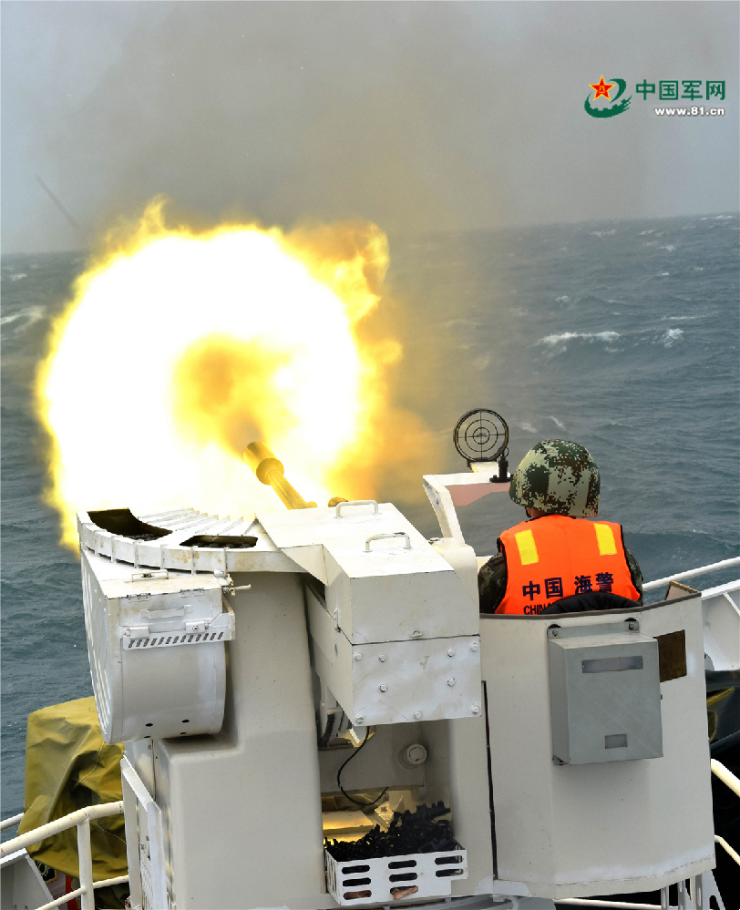 海警官兵组织开展30毫米舰炮射击。
