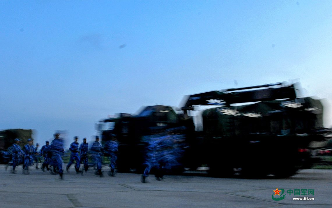 防空旅跨昼夜对抗训练,官兵快速奔向战位。王松岐 摄