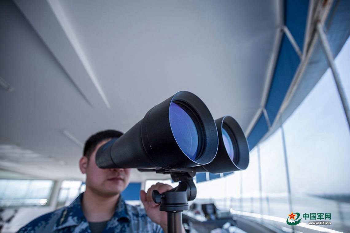 塔台驱鸟指挥员观察鸟情。
