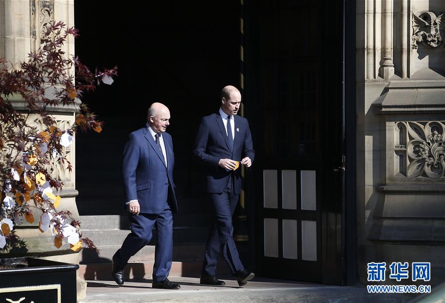 5月22日,在英国曼彻斯特,威廉王子(右)出席悼念活动后准备离开。新华社发(克雷格·布劳摄)