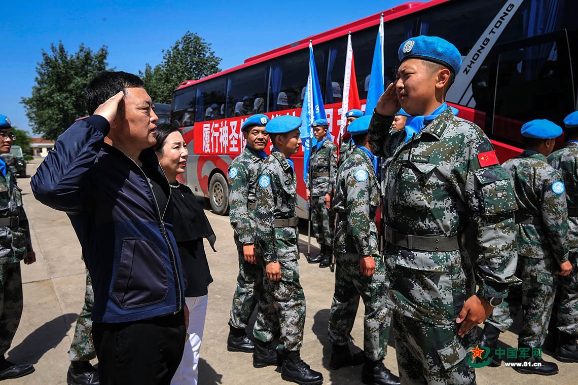 中尉是第六批赴马里维和部队警卫分队的副中队长迟博文,给他敬礼的是父亲迟国维——一个曾服役30年的退休老兵。