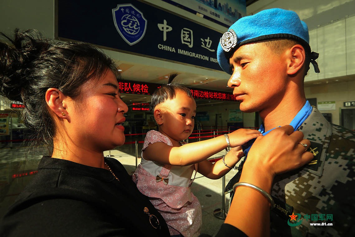 听说丈夫出国维和,张惠抱着1岁半的女儿从辽宁老家坐了5个多小时的客车和15个小时的火车,辗转数千里来到丈夫的部队,为他送行。