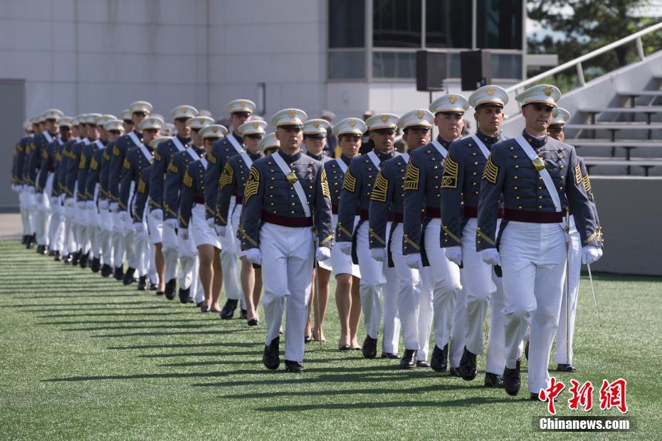 当地时间5月26日,美国著名军事院校西点军校在位于纽约州西点镇的校园体育场举行2018届毕业生的毕业典礼,972名军校学员经过四年学习后毕业,学员们入场参加毕业典礼。西点军校创办于1802年,是美国第一所军事学校。图为毕业学员入场。 中新社记者 廖攀 摄