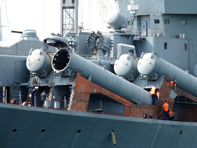 俄黑海舰队旗舰如今锈迹斑斑进船厂维修