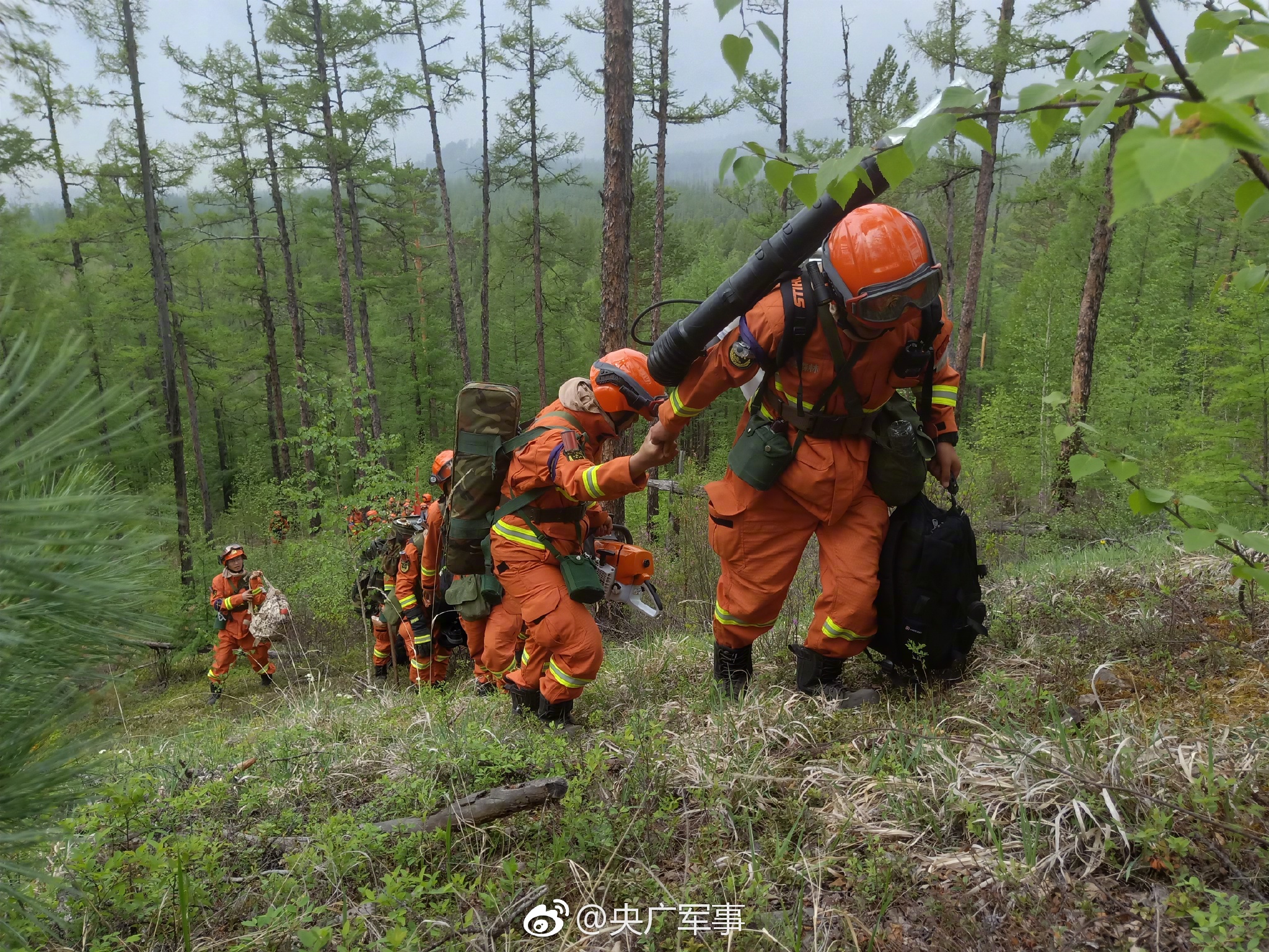 内蒙古大兴安岭汗马发生雷击火,一场突如其来的灾难经过3460名扑火指战员6天的奋力扑救,截至6日10时,实现全线合围,外线明火全部扑灭,整个火场全面得到控制。而武警森林部队呼伦贝尔支队的官兵就是其中的一支攻坚力量。(李建龙 赖德兴 陈胜瑶)