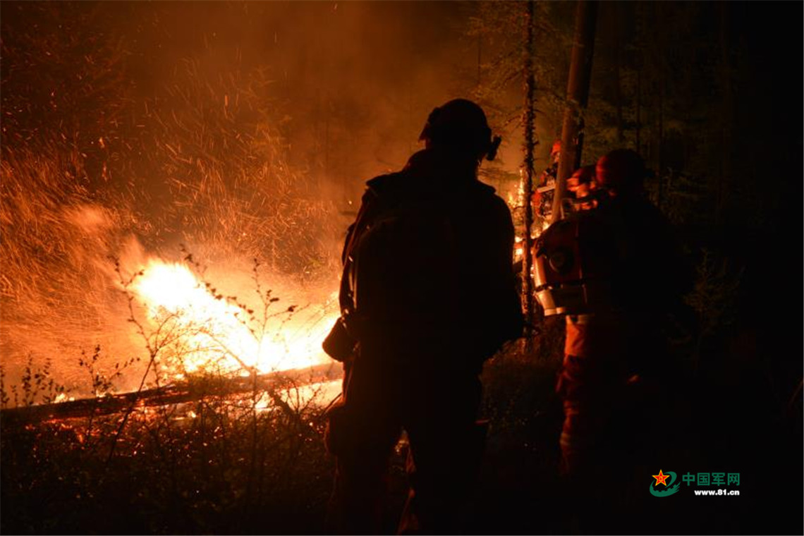 武警森林部队官兵在汗马国家级自然保护区进行扑火作业。