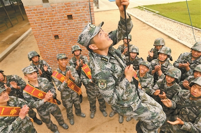 一等功臣张茂春为战友示范攀登动作。