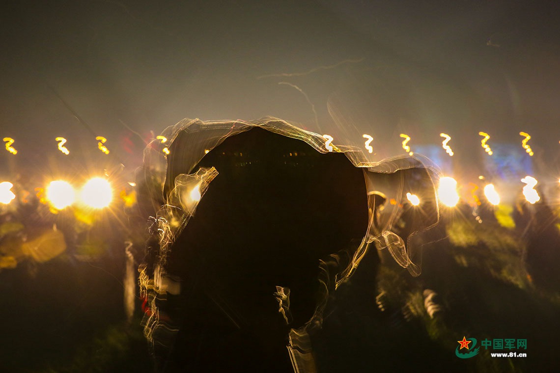 夜幕下,特战队员们开始快速搭设单兵宿营帐篷。
