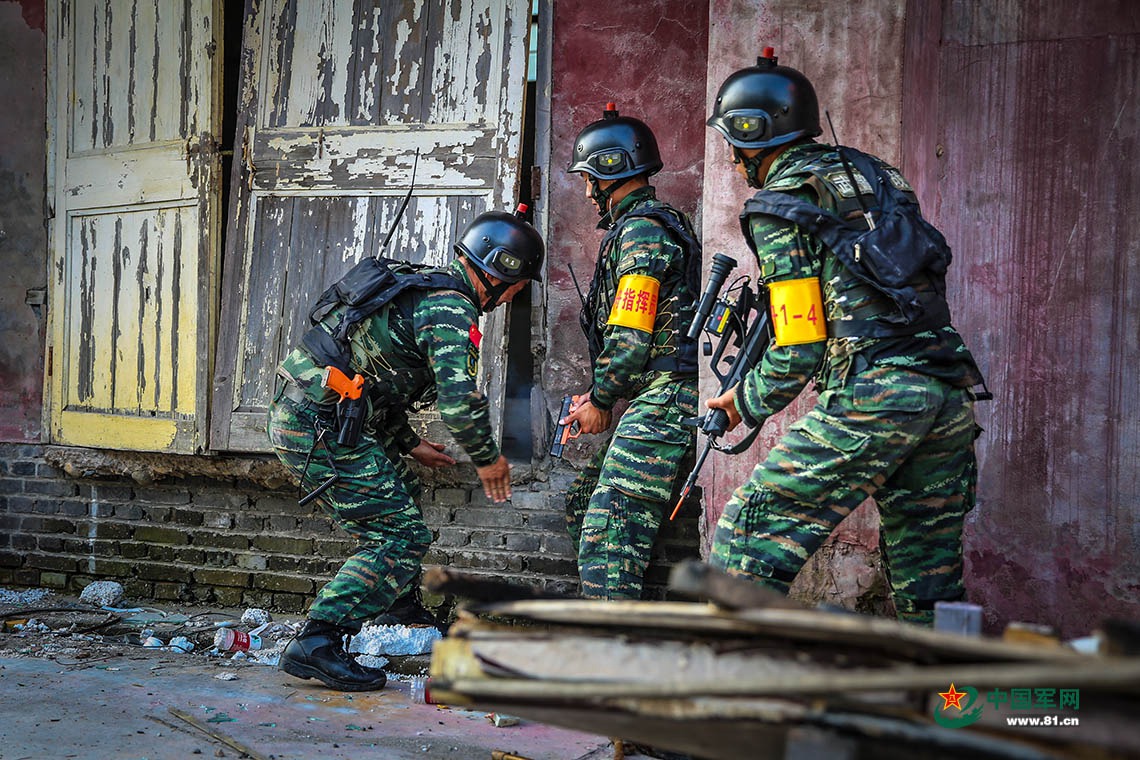 从门突入之前,特战队员利用烟雾弹进行掩护。