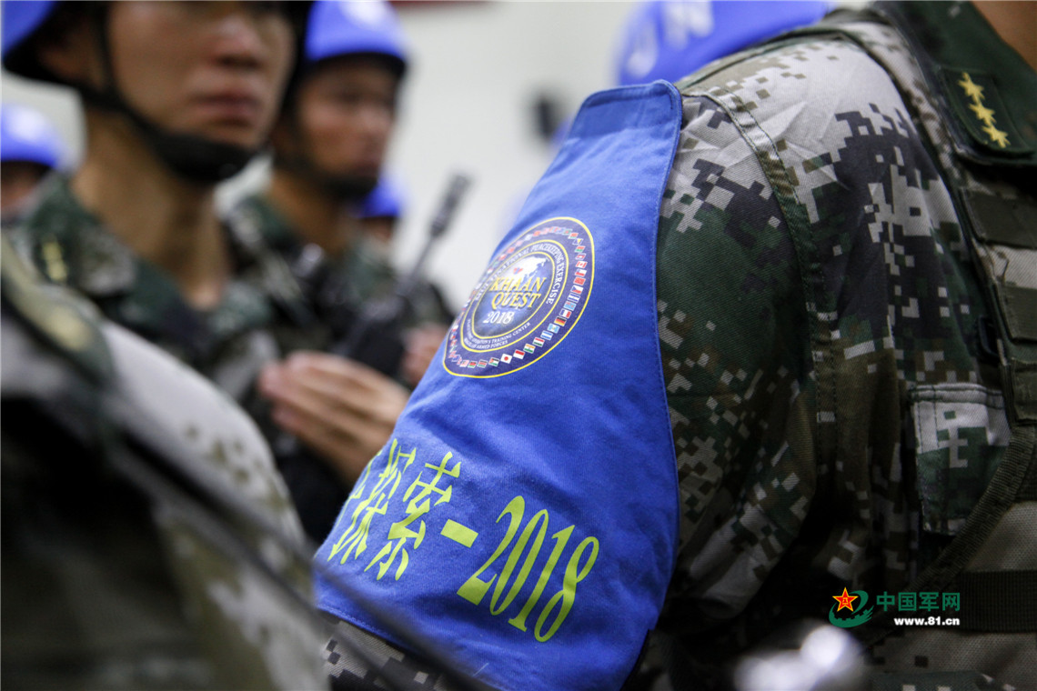 “可汗探索-2018”维和联演臂章。申冬冬 摄