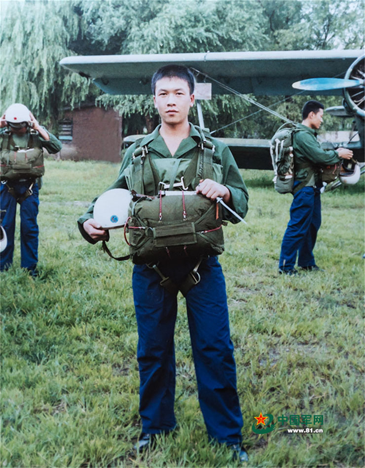 初学飞行,周本祥和战友准备升空进行跳伞训练。