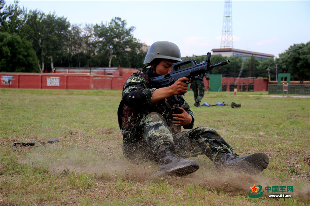 队员正在转换射击姿势,同时完成更换弹夹动作。吴俊杰 摄