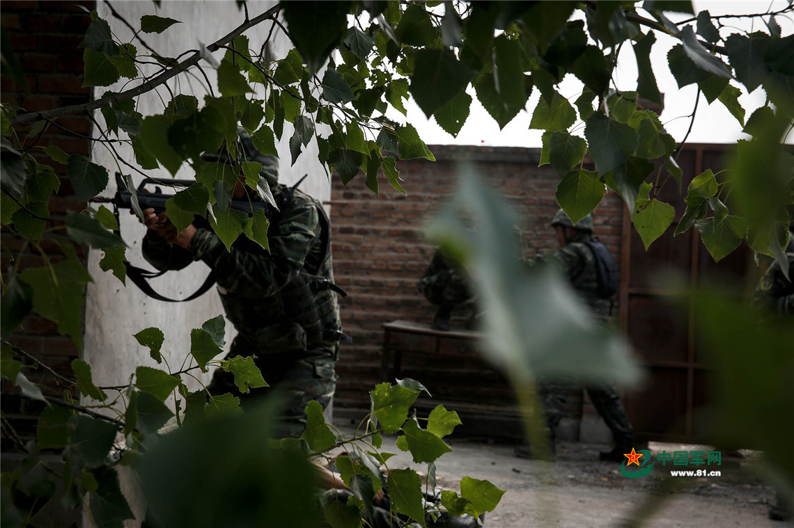 成功突入后,另一组特战队员从正面援助。中国军网记者 冯开华 摄