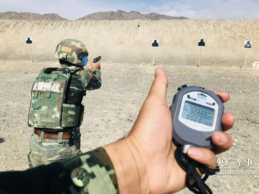 一名特战队员正在进行手枪快速射击