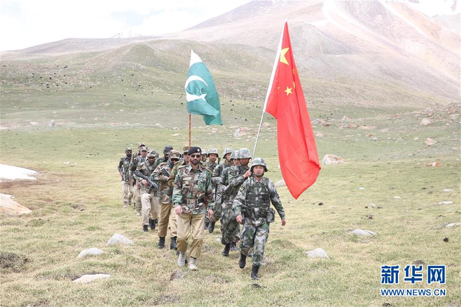 6月26日,中巴边防军警联合巡逻海拔4700多米的红其拉甫达坂。当日,新疆军区某边防团红其拉甫边防连官兵和巴基斯坦伊斯兰共和国红其拉甫边防警察在海拔4700多米的红其拉甫达坂开展联合边境巡逻活动,重点突出联合决策、联合指挥、联合实施的协同配合能力演练,以提升中巴双方边防军警在高原复杂条件下的管边控边合力。新华社发(姬文志 摄)