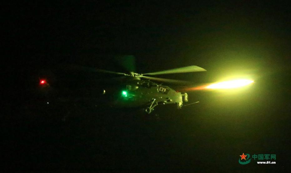 进入夜间,各保障要素在戈壁滩迅速前出,武装直升机补充油料和武器弹药后再次起航,直升机进入夜视飞行,飞行员利用综显和红外瞄准设备实时搜寻锁定目标,抵近目标后按下发射按钮,数十枚航炮倾泄而出,目标被火力完全覆盖。吴世科 于光彤 摄影报道 图片来源:中国军网