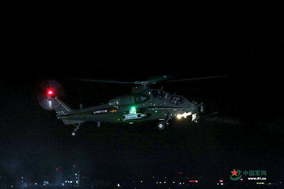 武装直升机夜视飞行。