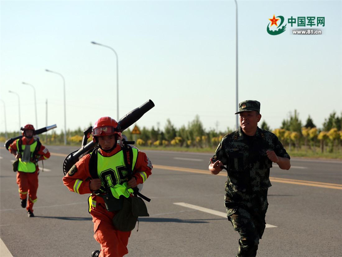 加油还有50米,支队张嘉辉参谋长为官兵加油鼓劲。