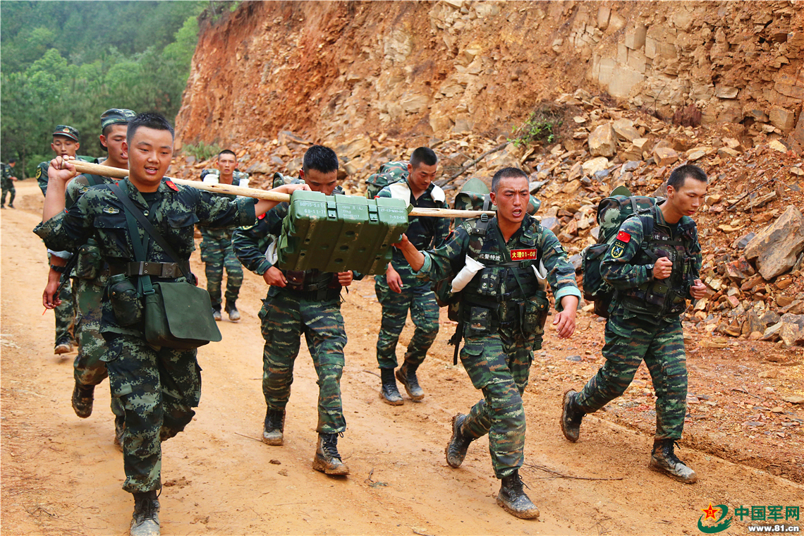 特战队员进行长途行军课目训练