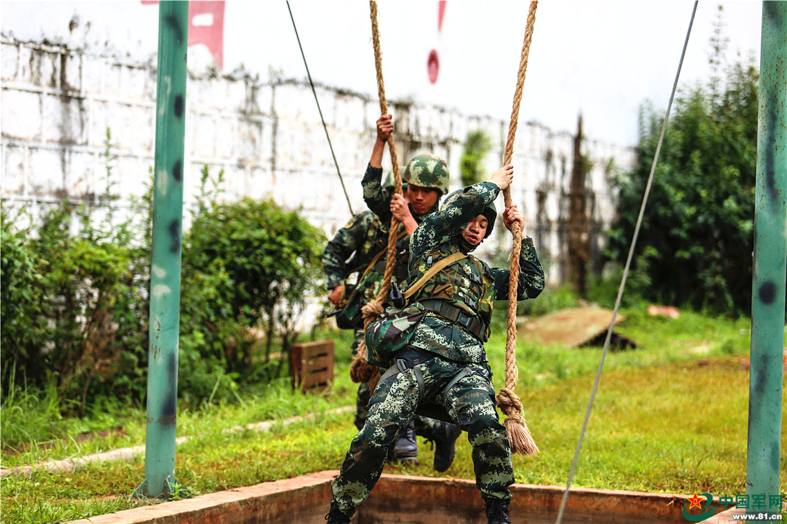 官兵通过障碍。胡程摄