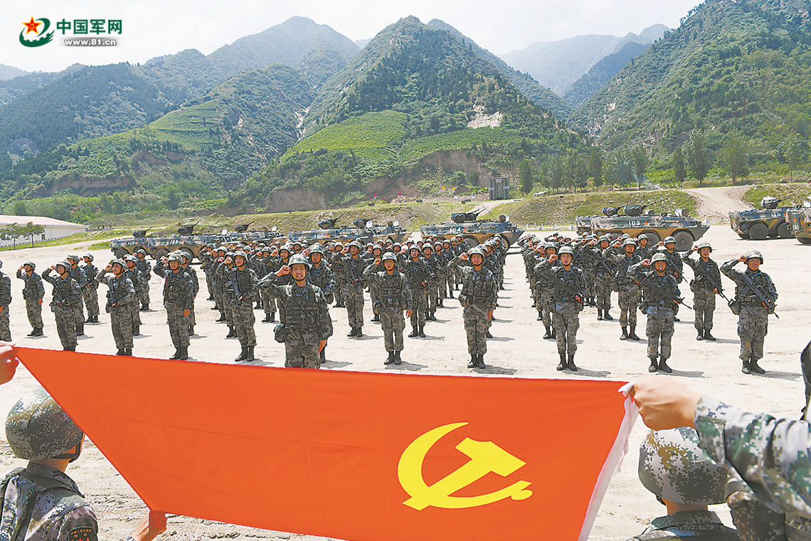 每次执行重大任务,连队都要组织官兵向党旗宣誓活动。