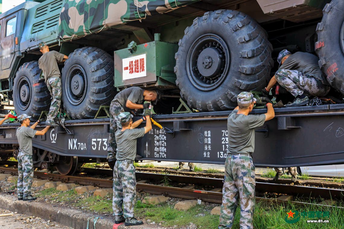 捆绑是否牢固,关系着人员和车辆装备的安全。车辆定位后,官兵分头进行捆绑固定。他们打开捆绑工具箱,拿出加力器、三角木等工具,一丝不苟地开始作业。由于程序较多,有的战友忘记在拉力器和平板车之间垫橡皮片、有的三角木在平板和车轮间贴的不实……这时,一旁监督检查的安检员就会立刻进行纠正。