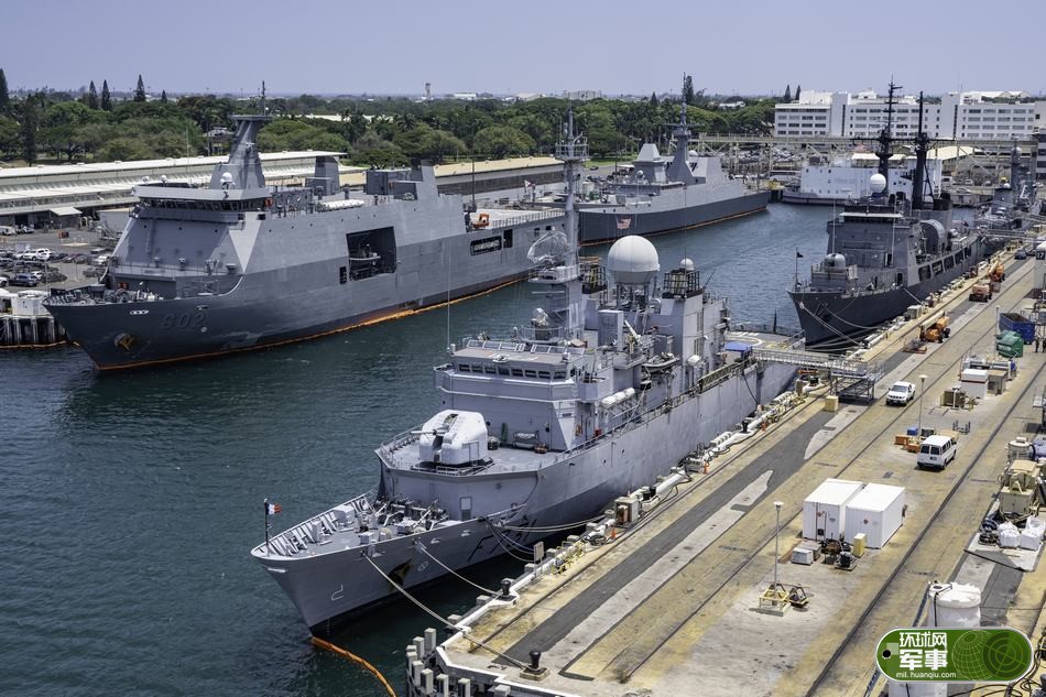 图为在珍珠港集结参加“环太军演”的各国战舰