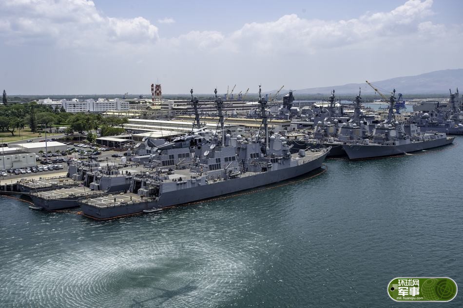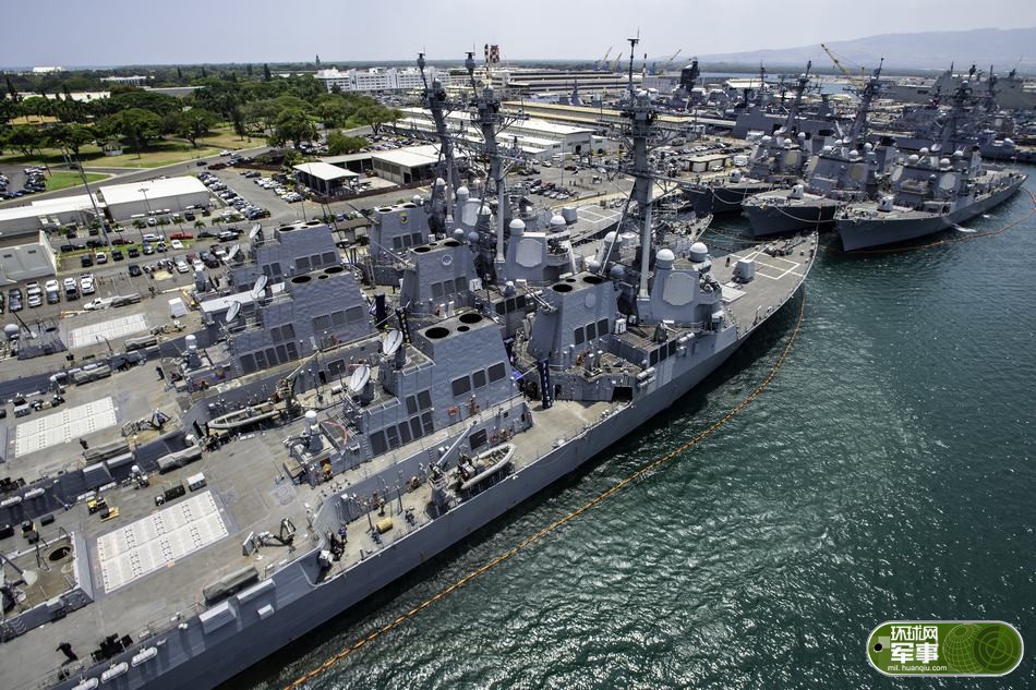 图为在珍珠港集结参加“环太军演”的各国战舰