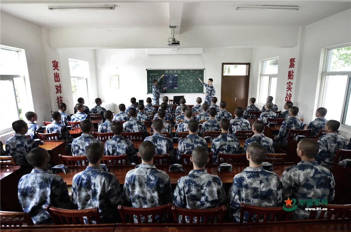 训练室里,专业技术教官罗伦瑞正在上课,雷达操纵学兵训练热情高涨。