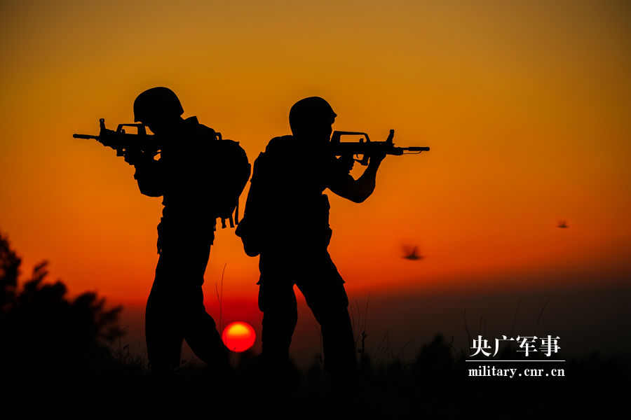 对抗演练中,红一连官兵搜索前进。胡善雨摄