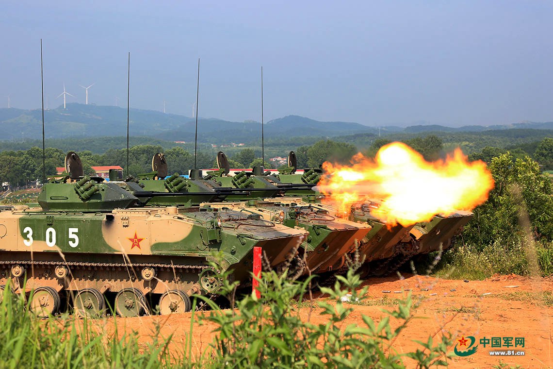 空降战车对远距离目标实施火力打击。陈立春 摄