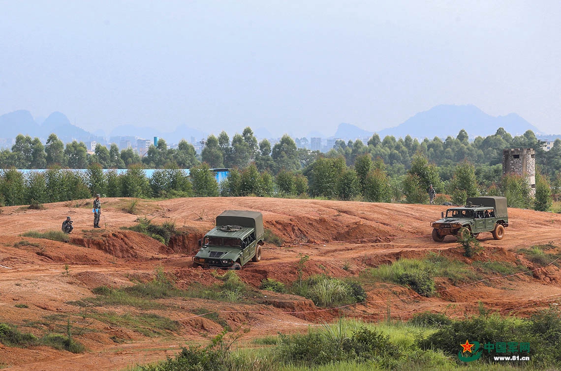 特战小队在连贯演练中进行复杂道路驾驶课目考核。