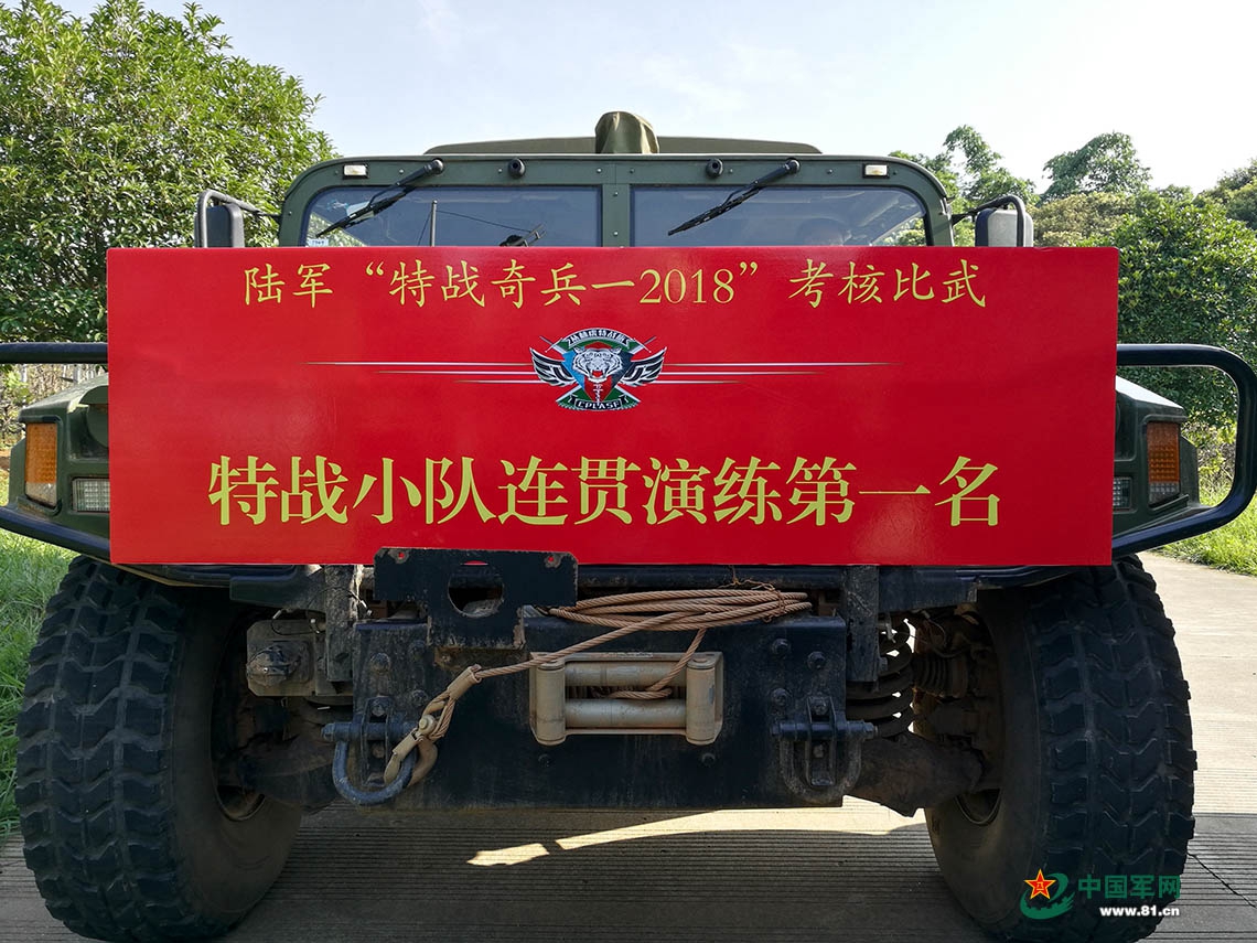 挂在猛士车上的“特战小队连贯演练第一名”奖牌。