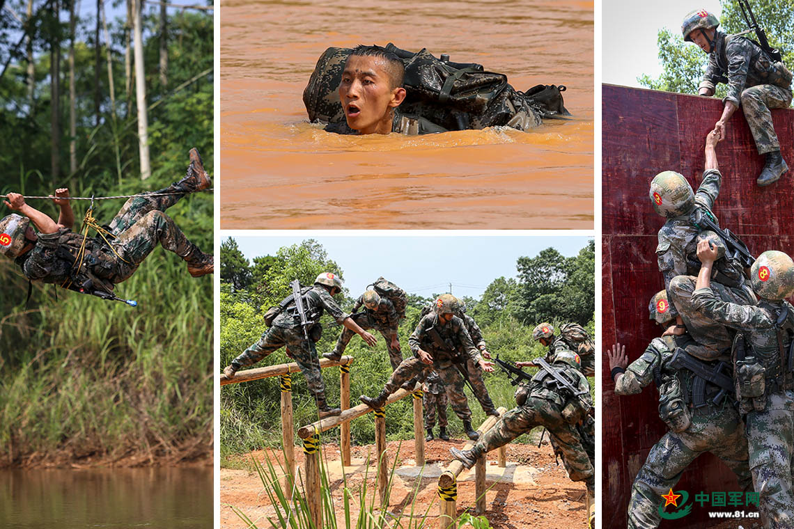 中国官兵协助外军参赛队员进行适应性训练。