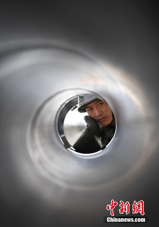 7月22日至23日,正在西北某地驻训的陆军第78集团军某炮兵旅远程多管火箭炮营进行了实弹射击演练,演练分为战备等级转换、现场机动、疏散隐蔽、战斗准备、战斗实施5个阶段,充分检验了该营“新质铁拳”遂行火力打击任务能力。该营新装备列装不到4个月,便在首次实弹射击中实现首发命中、发发命中。图为弹药入膛前再次检查炮管内情况。 中新社发 杨再新 摄